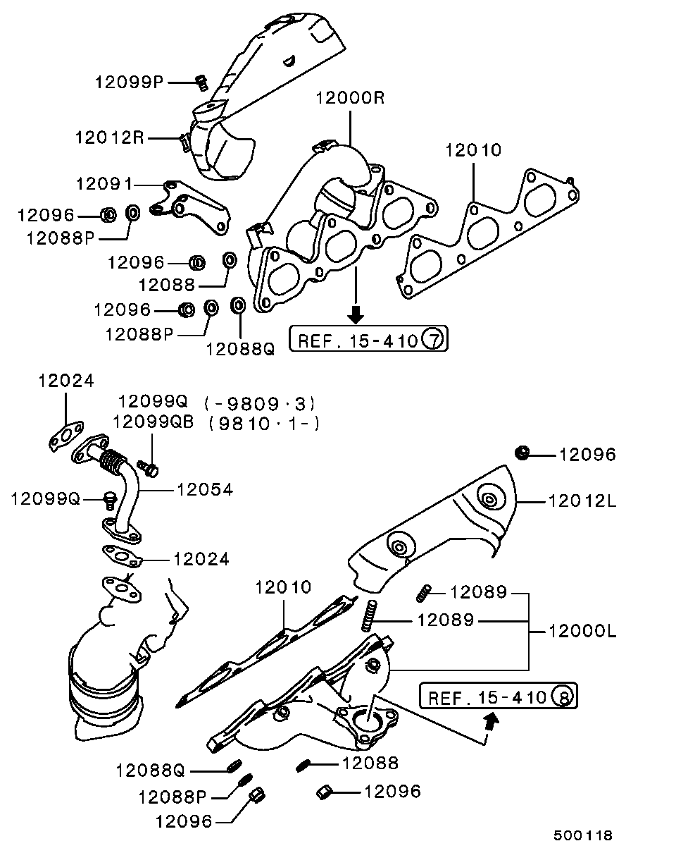 > Автомобіль: 3000GT (1.04.1990-3.06.2000) > Модель: 3000/4WD/4WS /Z16A/ > Група: СИСТЕМА ВПУСКУ І ВИХЛОПУ /15/ > Підгрупа: ВИПУСКНИЙ КОЛЕКТОР /310/