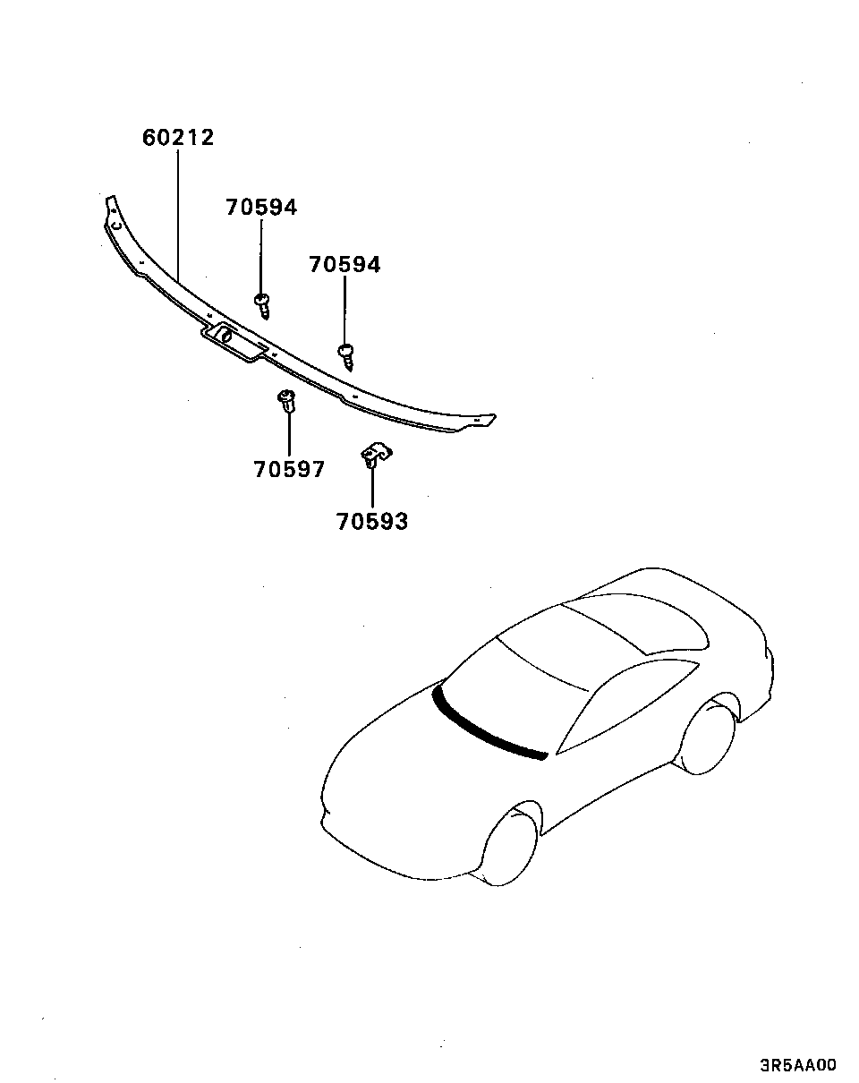 > Автомобіль: 3000GT (1.04.1990-3.06.2000) > Модель: 3000/4WD/4WS /Z16A/ > Група: ЗОВНІШНІ КОМПОНЕНТИ КУЗОВА /51/ > Підгрупа: ОЗДОБЛЕННЯ ТА МОЛДИНГИ, ПЕРЕДНЯ ЧАСТИНА /010/ Выберіть ЗАПЧАСТИНУ: