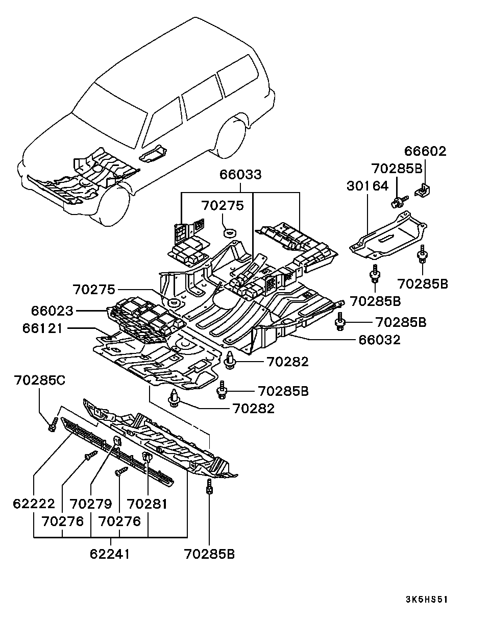 > Автомобіль: PAJERO/MONTERO (1.12.1990-3.04.2004) > Модель: 3000/SHORT WAGON /V23W/ > Група: ЗОВНІШНІ КОМПОНЕНТИ КУЗОВА /51/ > Підгрупа: БРИЗКОВИКИ ТА ЗАХИСТ /310/