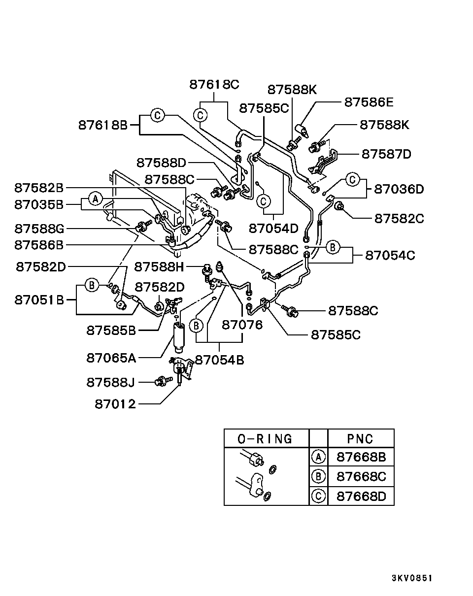 > Автомобіль: PAJERO/MONTERO (1.12.1990-3.06.2003) > Модель: 2400/SHORT VAN /V11V/ > Група: КОНДИЦІОНЕР, ОБІГРІВАЧ, ВЕНТИЛЯЦІЯ /55/ > Підгрупа: ВИПАРЮВАЧ, ТРУБКИ КОДИЦІОНЕРА /430/