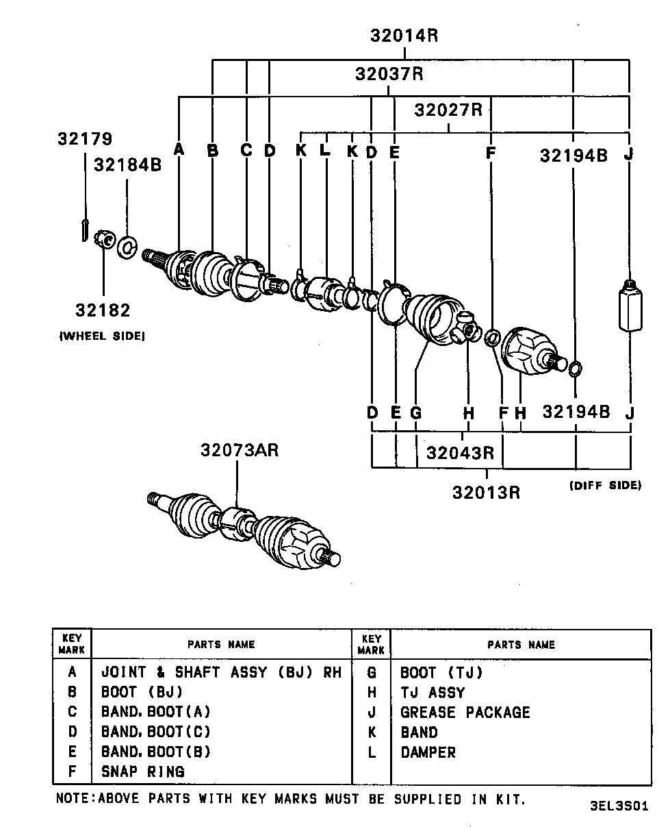 > Автомобіль: COLT/LANCER (1.05.1988-3.07.1995) > Модель: 1600SOHC/2WD(4DOOR) /C66A/ > Група: ВІСЬ ПЕРЕДНЯ /26/ > Підгрупа: ПРИВІДНИЙ ВАЛ ПЕРЕДНЬОЇ ВІСІ /130/ Выберіть ЗАПЧАСТИНУ: