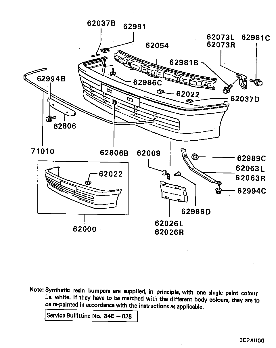 > Автомобіль: COLT/LANCER (1.05.1988-3.07.1995) > Модель: 1600SOHC/2WD(4DOOR) /C66A/ > Група: КУЗОВ /42/ > Підгрупа: ПЕРЕДНІЙ БАМПЕР ІЗ КРІПЛЕННЯМ /010/
