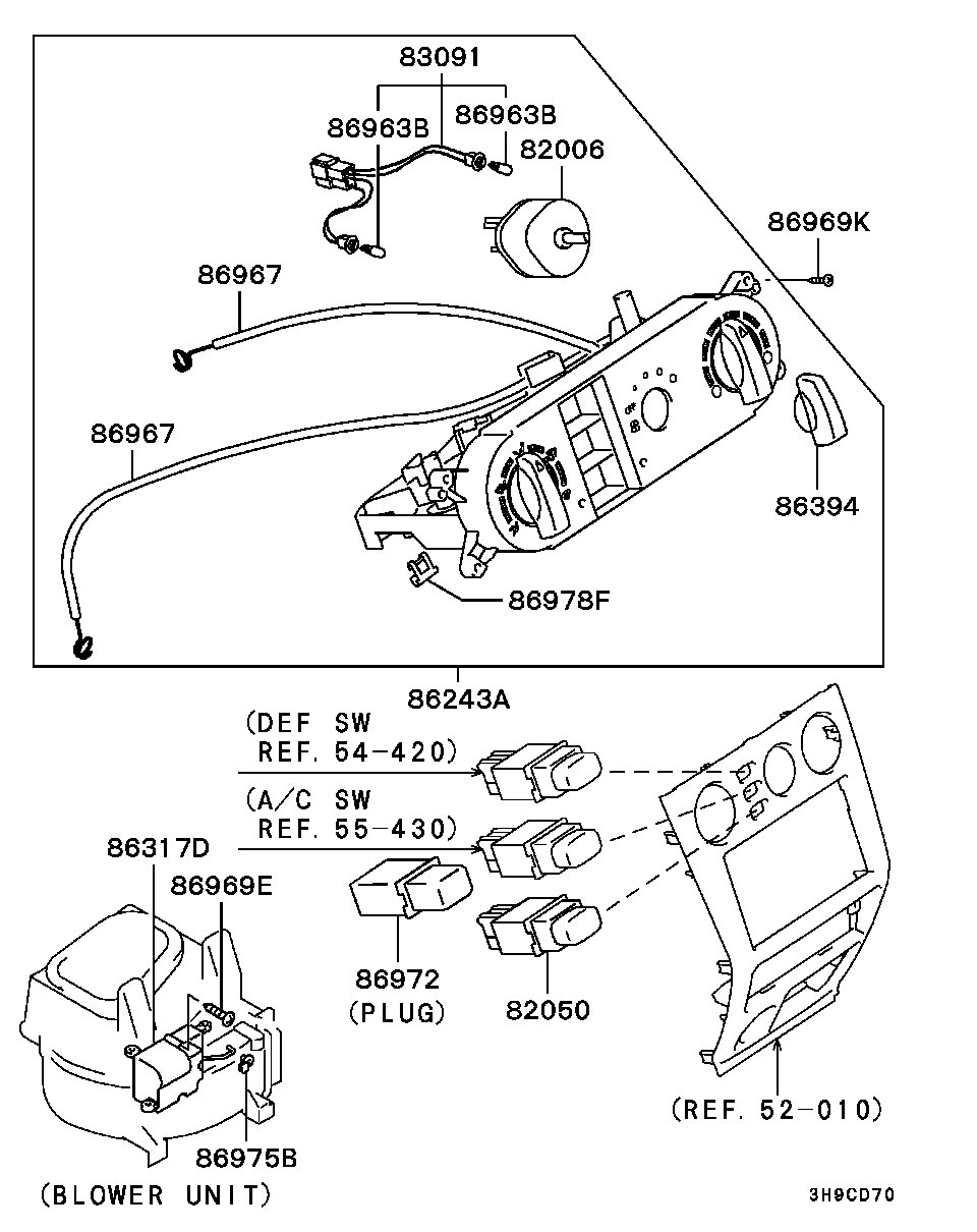 > Автомобіль: GALANT (1.10.1996-3.03.2006) > Модель: 2500/2WD /EA5A/ > Група: КОНДИЦІОНЕР, ОБІГРІВАЧ, ВЕНТИЛЯЦІЯ /55/ > Підгрупа: УПРАВЛІННЯ ОПАЛЕННЯМ /210/ Выберіть ЗАПЧАСТИНУ: