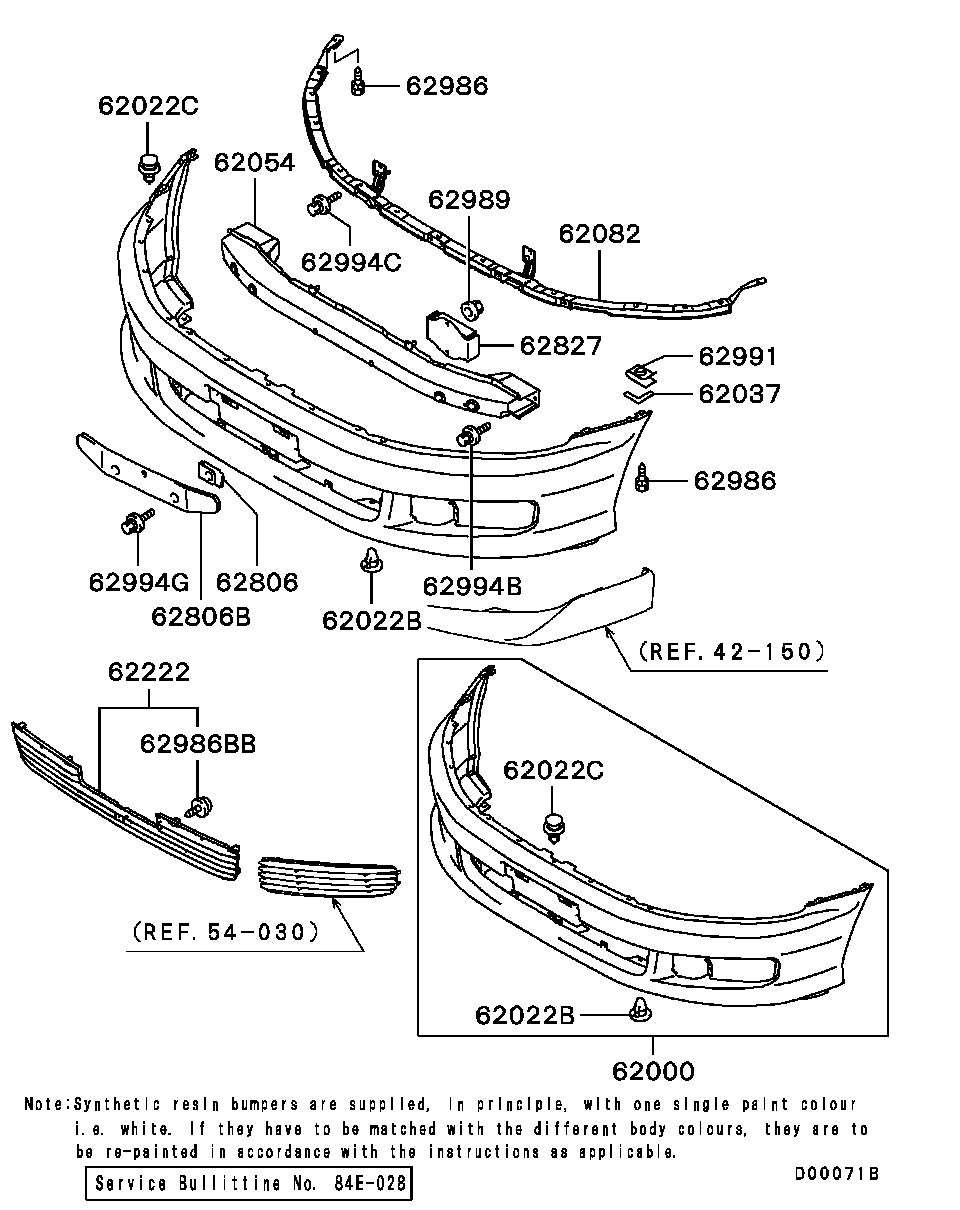 > Автомобіль: GALANT STATION WAGON (1.12.1998-3.09.2002) > Модель: 2500/2WD /EA5W/ > Група: КУЗОВ /42/ > Підгрупа: ПЕРЕДНІЙ БАМПЕР ІЗ КРІПЛЕННЯМ /010/